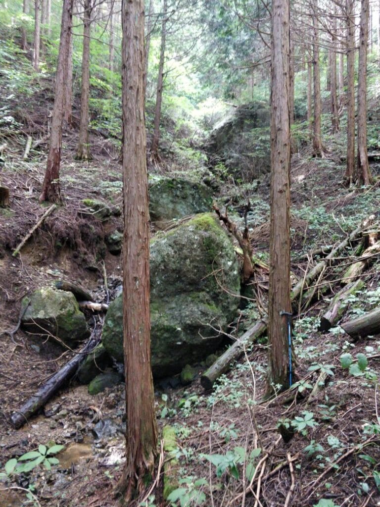 地図を確認して荒地記号の場所から山肌を縫うように行動開始
