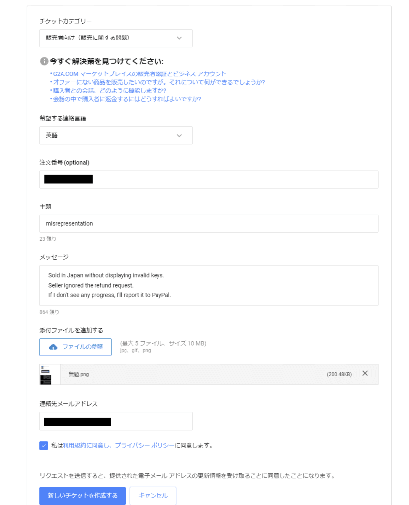 用意しておいたスクショと一緒に送信した瞬間に返金完了