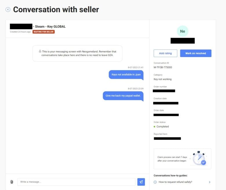 PayPal様に頼んだら即対応するしチャットへの返信もされてる