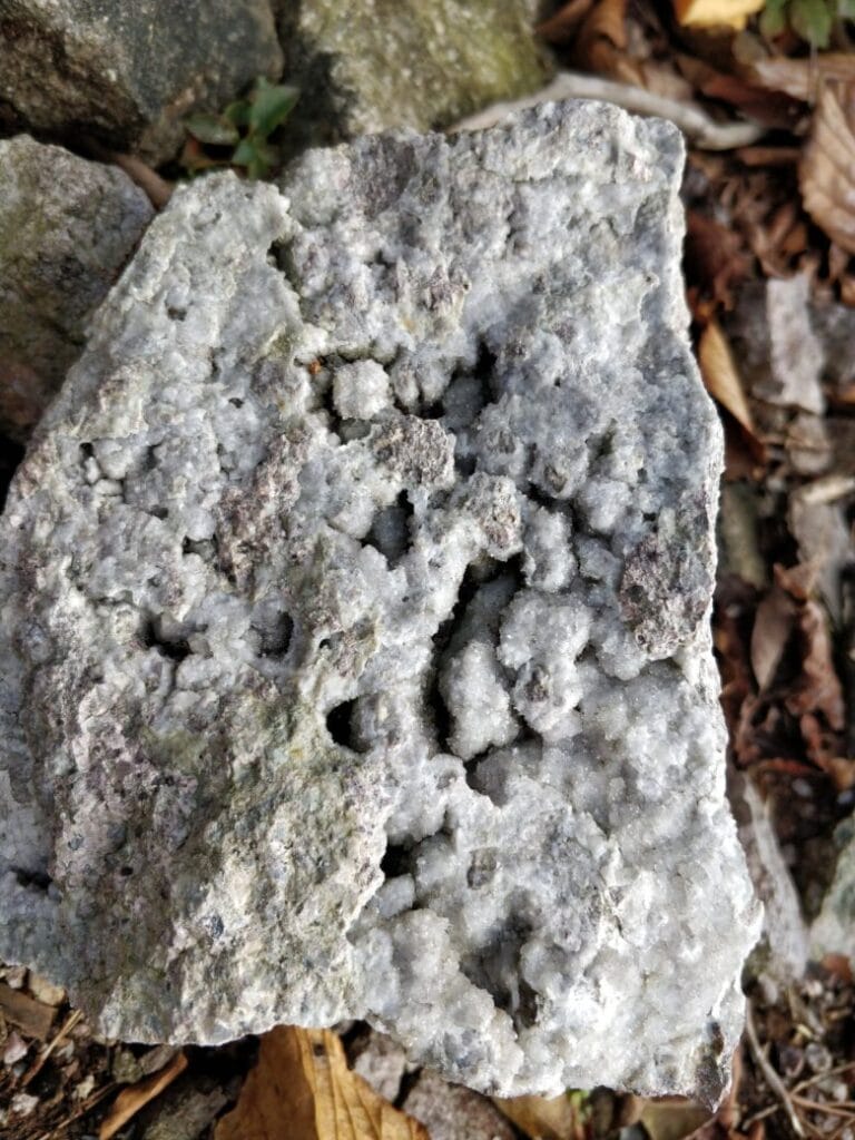 ざらめ水晶がついた変わった形の石