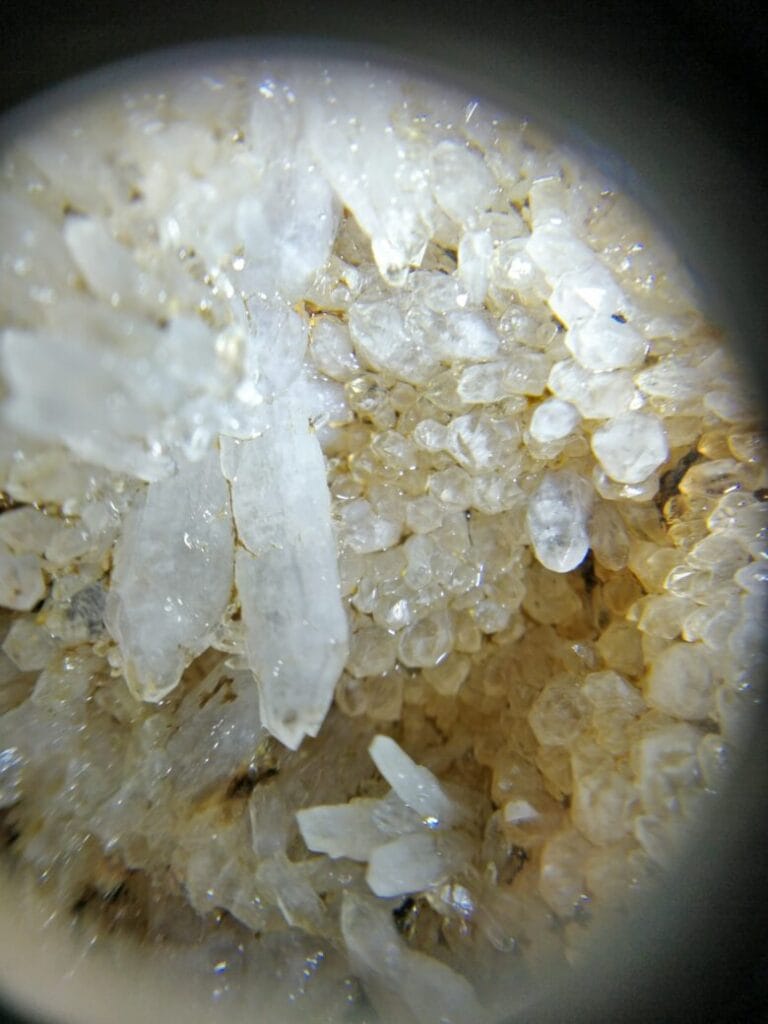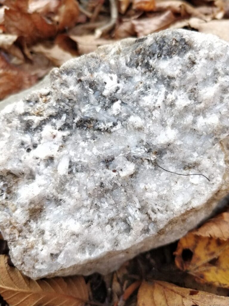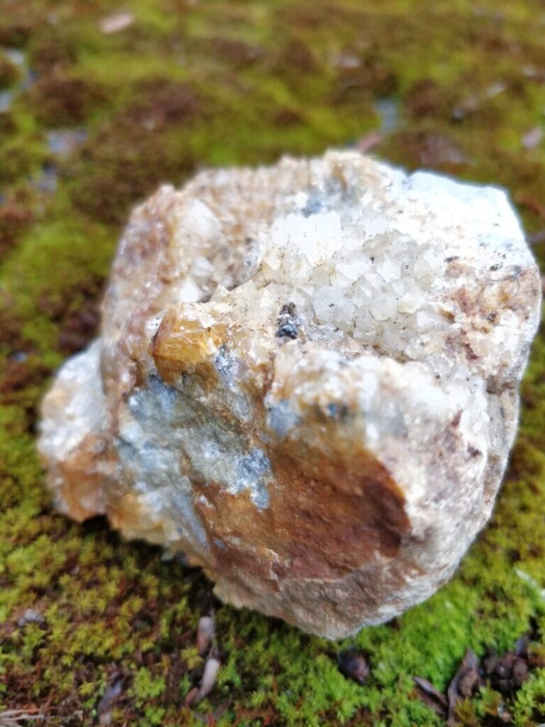 水晶が埋まったような断面の石