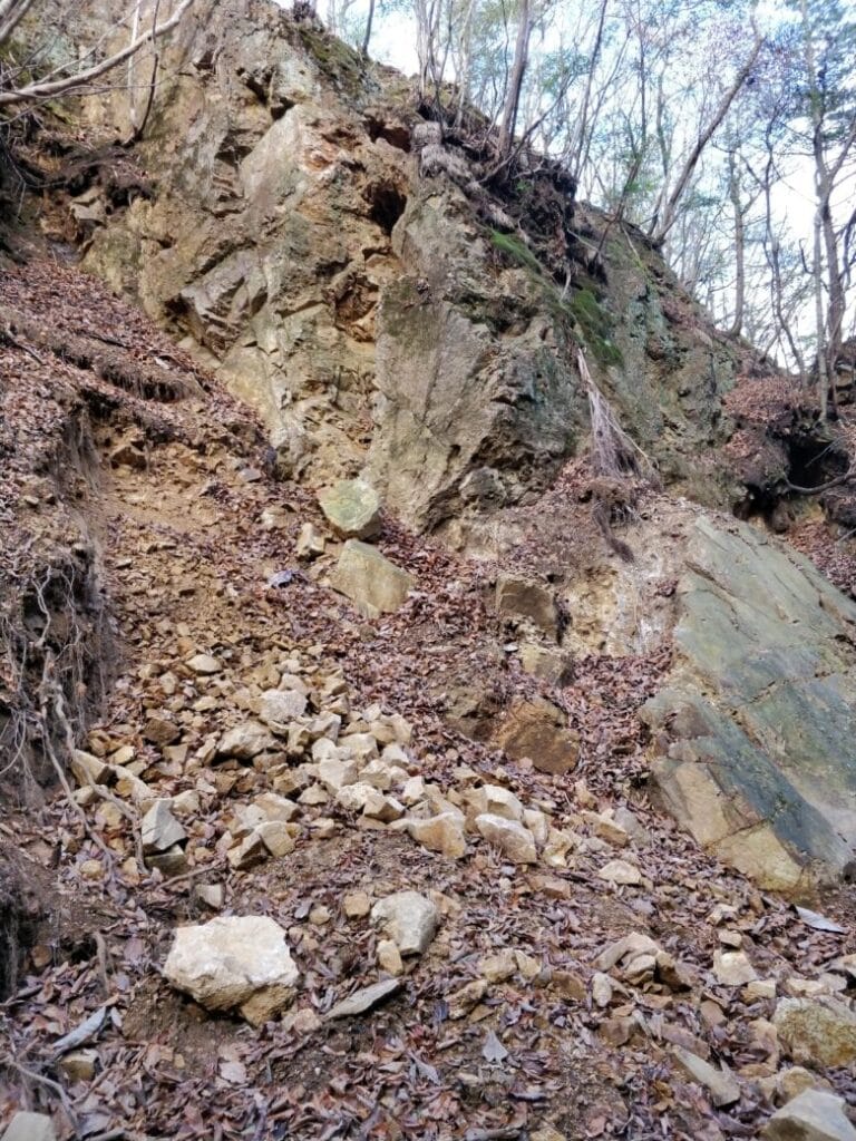 崖を切り崩したような場所で表面採取