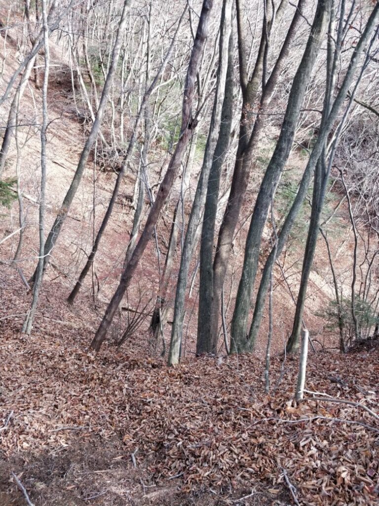 膝まで埋まるほどに積もった落ち葉はダニやヒルの格好の住処