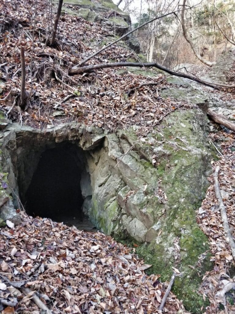 さらに降りた途中に隠れたように坑口