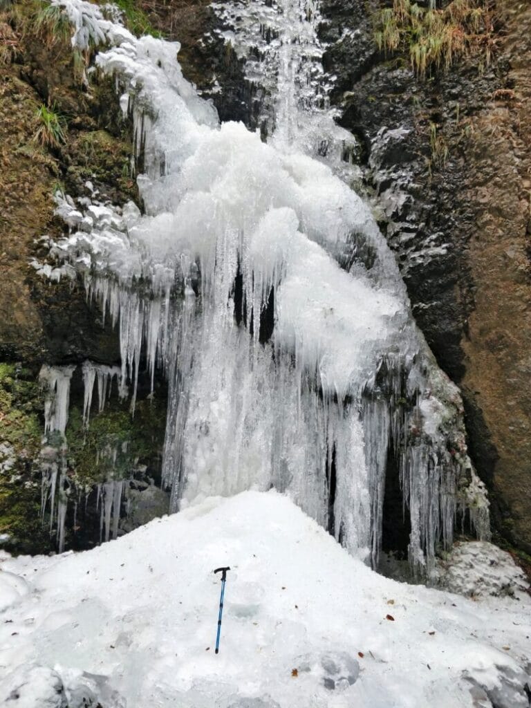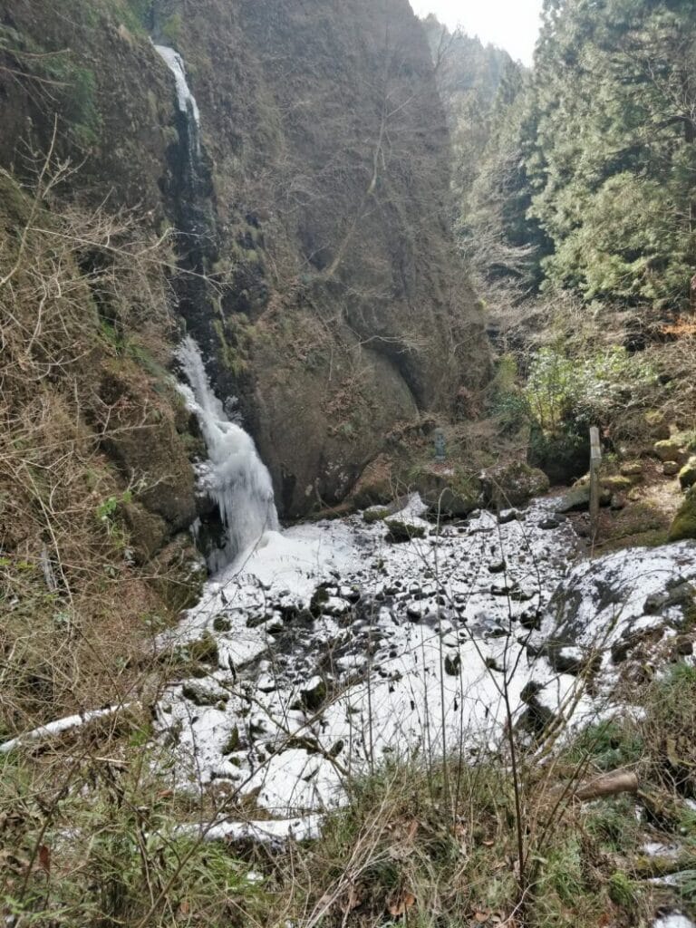 遠くに見えるつららと思ったものは滝が凍っていたものだった