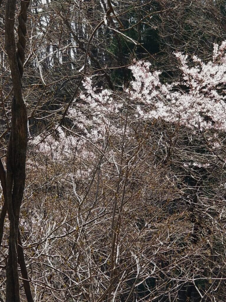 ついでに見た山桜は生存競争から背が高く花びらの色は薄く