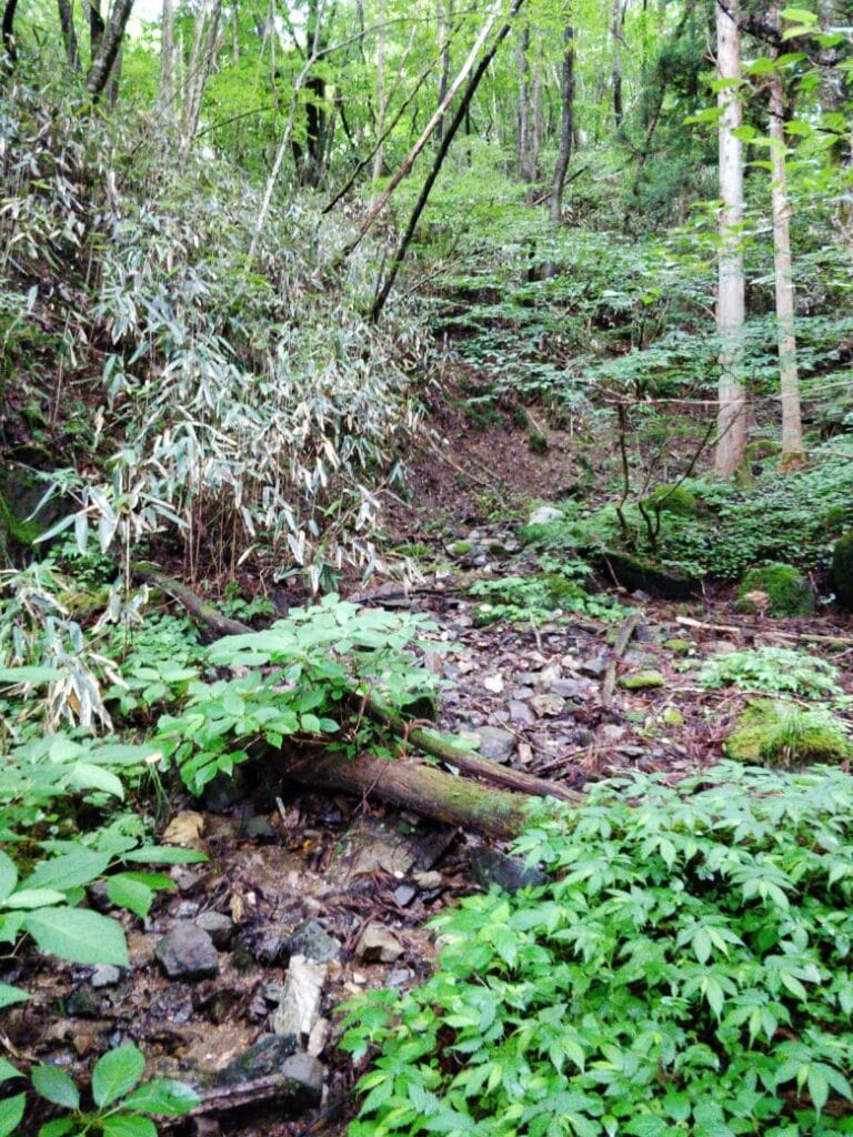 雨の山は歩きにくく目的辺りを目指すのに一旦道まで出る