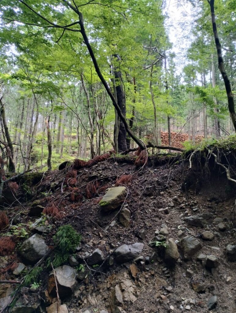 涸れ沢のような場所に自然に出来たようなガレ場が目立つ