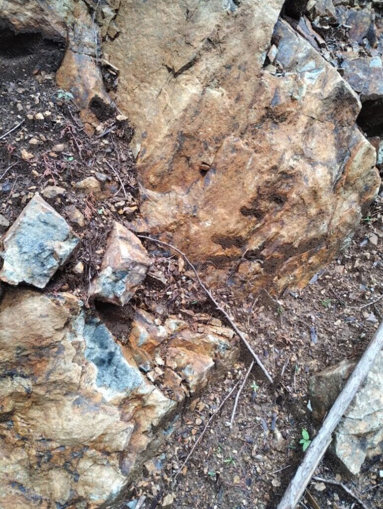 割れた岩から青い部分がのぞいている