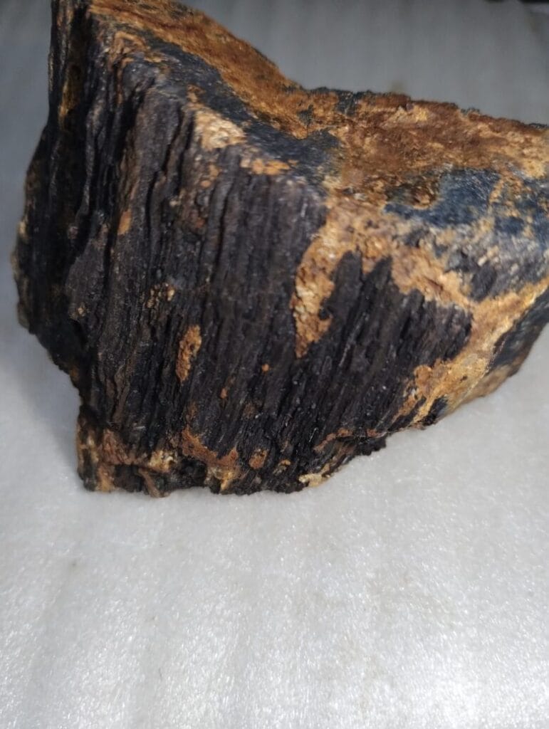 黒くて持つと重い。普通の珪化木とは違う感じがして調べると