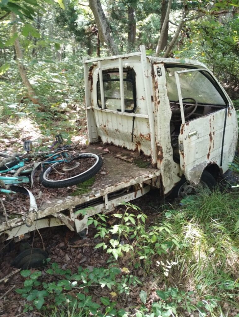 対岸に上がって少しも歩かないうちに謎の軽トラ