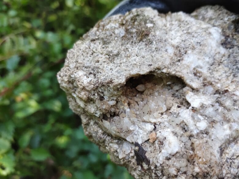 迂回して落ちている石に水晶が含まれているのを発見