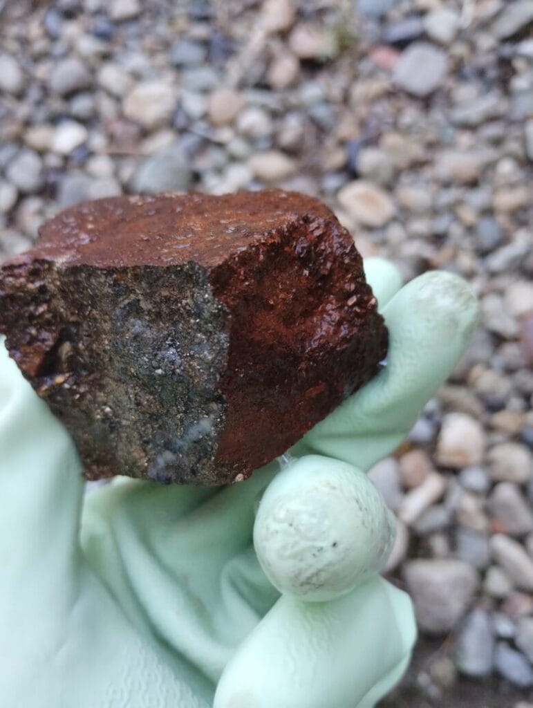 沢で見つけた赤サビまみれの鉱物をサンポール洗浄してみた