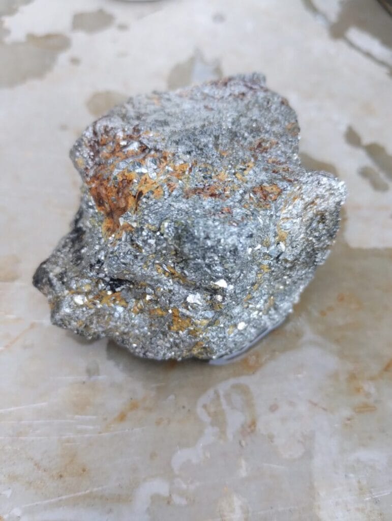 形に均一感があるから砕いた後の石と思う。軽く見ただけで赤サビがひどい