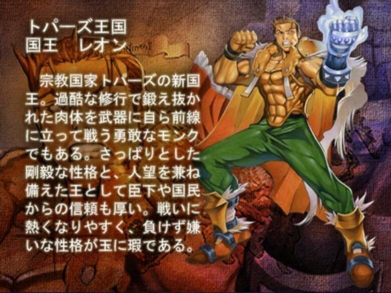 ムーンパレスと迷ったが、四方を囲まれたトパーズ王国を選んでみる。君主はレオン