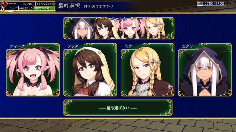 確かに敵は強くなってるけど、問題なく進めて最後の分岐でハーレムルートを選択