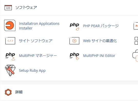 ソフトウェア項目までスクロールしてMultiPHPマネージャーを選択