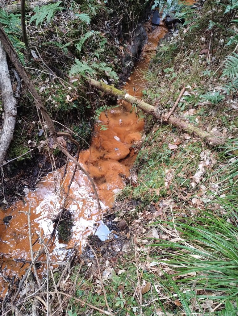 途中の足場の悪い用水路みたいな水が流れているところは鉱物が溶けた出したような茶色い水