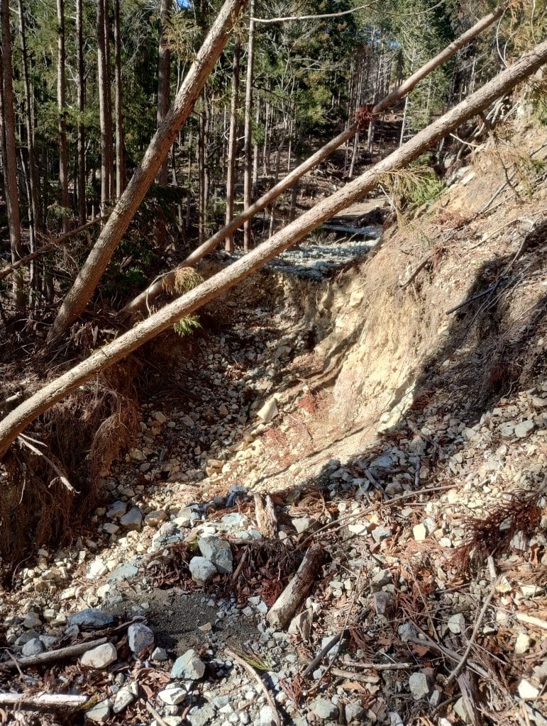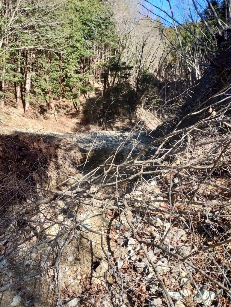 崩落したり地滑りが起きてなければ、目的地までは林道をまっすぐ歩くだけなので楽