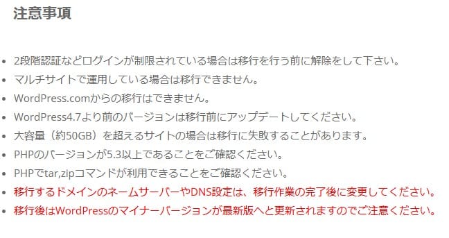 WordPress簡単移行ツールというソフトが備え付けられていて手順通りに操作すれば移行できるらしい