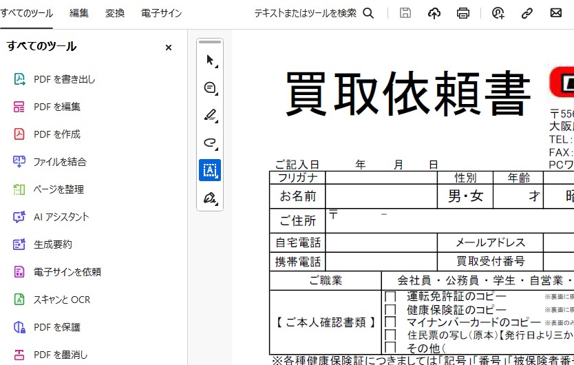 PDFファイルに直接記入して送付しても問題なかった