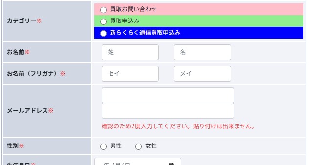 申し込みする前に商品カテゴリから買い取ってもらいたい物の価格をコピペしておくと入力するとき楽