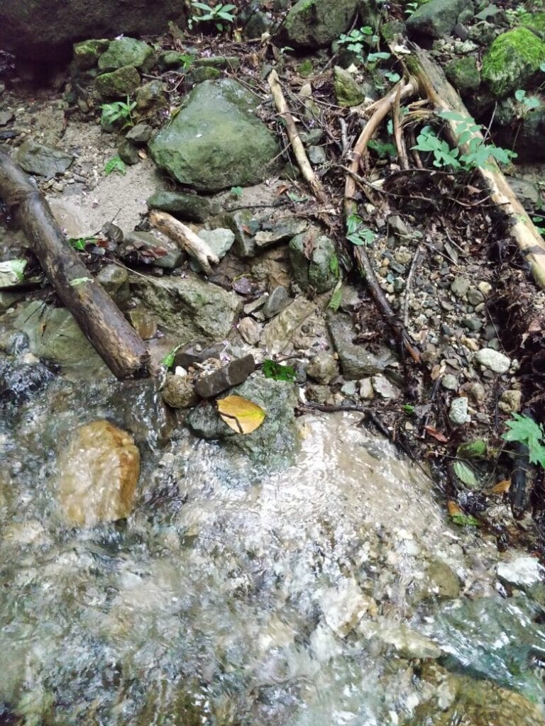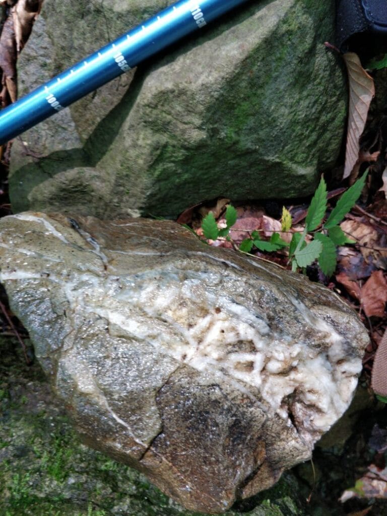 沢沿いに石を見ながらスタート地点の方向に戻っていく
