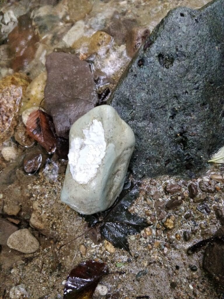 目的の石とは別に石の上に鳥の糞が乗っている石
